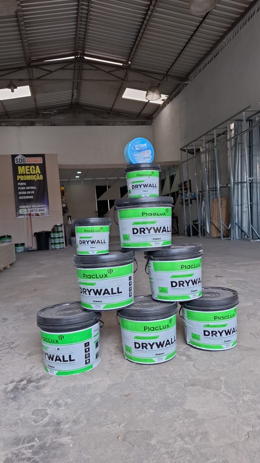 Trabalhamos com chapas de drywall, perfis metálicos, isolantes térmicos e acústicos, parafusos, fitas, massas, cantoneiras, buchas, montantes e guias — tudo com preços competitivos e pronta entrega.